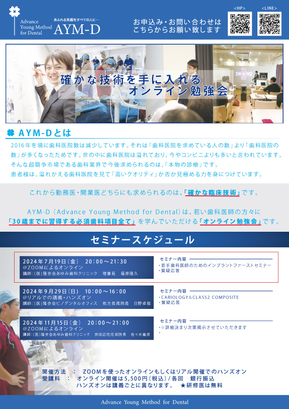 AYM-D(Advance Young Method for Dental)次回の講座案内をさせて頂きます。